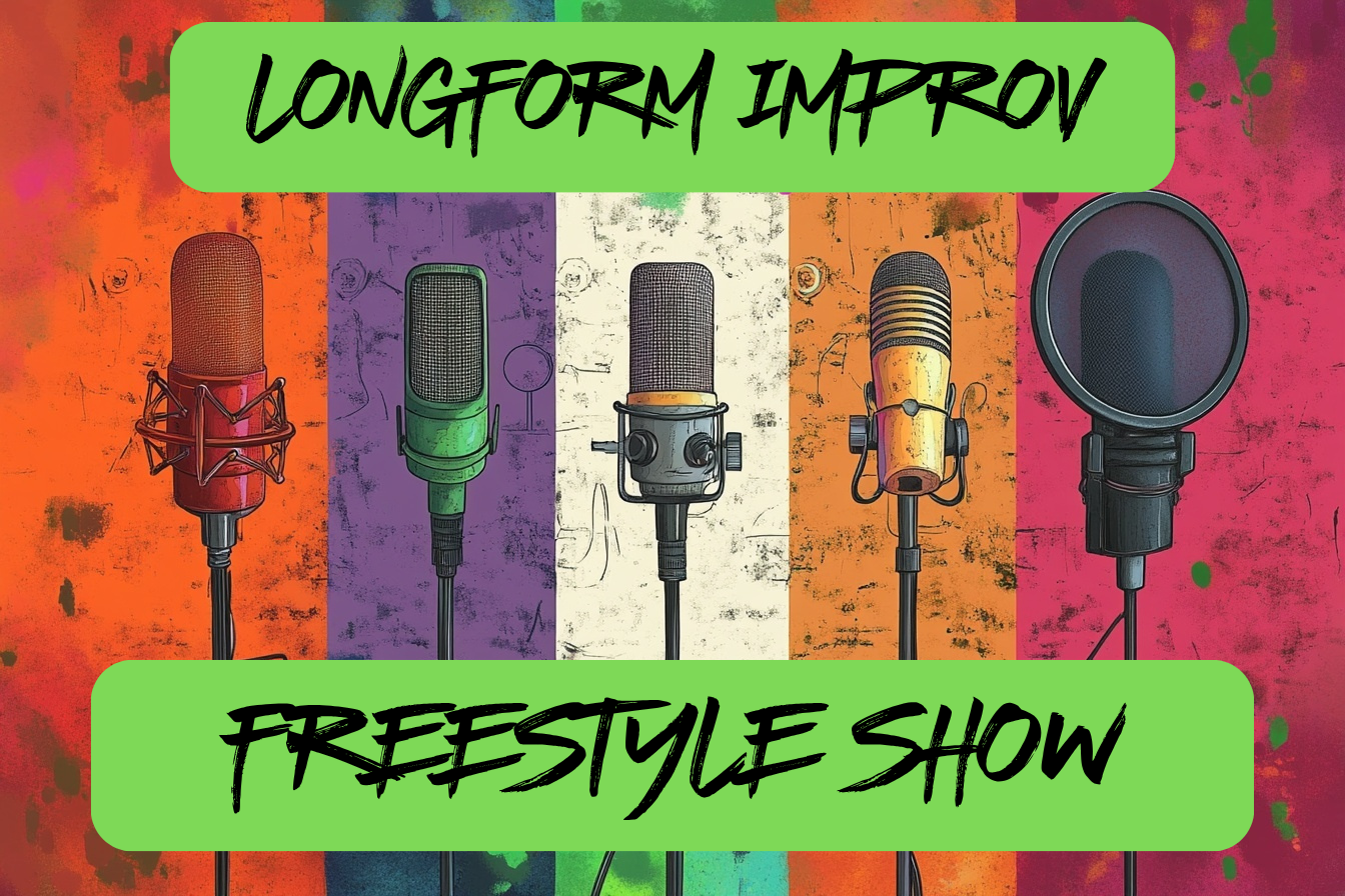 “You can bring yo parents, and bring yo child Longform improv mixed with freestyle Crowd crackin’ up, they lookin beguiled A show this good make you feel entitled We luxurious like a Savvy Bridal Might lose yo mind, send you down a spiral We goin blow for blow, we trading flow for flow Get ready for a new kinda show, fosho Come through and hang cause you already know It’sa Longform Improv Freestyle Show”